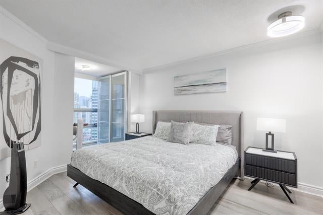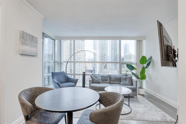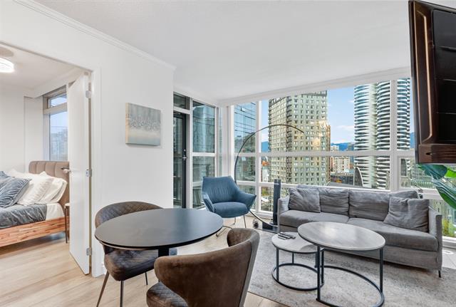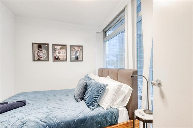 Welcome to Wall Centre in Downtown Vancouver! Experience air-conditioned luxury living at the highly sought-after Wall Centre. This beautiful 2-bed+office, 1-bath home features modern renovations throughout, including engineered hardwood flooring and granite countertops. There is no bylaws regarding short term accommodations The open, efficient layout offers a spacious living area and a generously sized primary bedroom w/c is large enough to comfortably fit a king-size bed. From a well-sized balcony, enjoy serene views of the manicured cobblestone courtyard, along with city, water, and mountain vistas. Unbeatable downtown location—just steps to Robson Street shopping, restaurants, hospitals, transit, and all urban conveniences. There is no bylaw restrictions on short term accommodations.