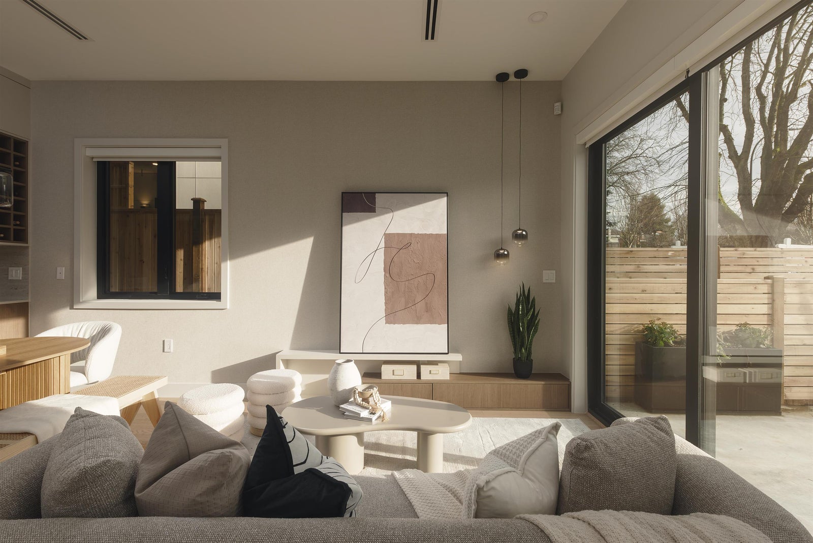 Proudly crafted by Medallion Homes and designed by VictorEric- Georgie Award winning, this south-facing Kitsilano front-unit duplex delivers refined coastal luxury just steps from Kits Beach, parks, cafés, and top Westside schools. Featuring 3 beds and 3.5 baths, it offers thoughtful design and premium finishes throughout. The gourmet kitchen includes Miele and Fulgor Milano appliances, custom cabinetry, and a sleek layout perfect for daily living and entertaining. Enjoy multiple walk-out patios, including a private chic Westcoast cedar patio with built-in BBQ, heaters, and a custom green wall. The top-floor bedroom is a serene retreat with a private deck and spa-inspired ensuite. Full crawlspace storage and a detached garage with epoxy flooring complete this exceptional home.