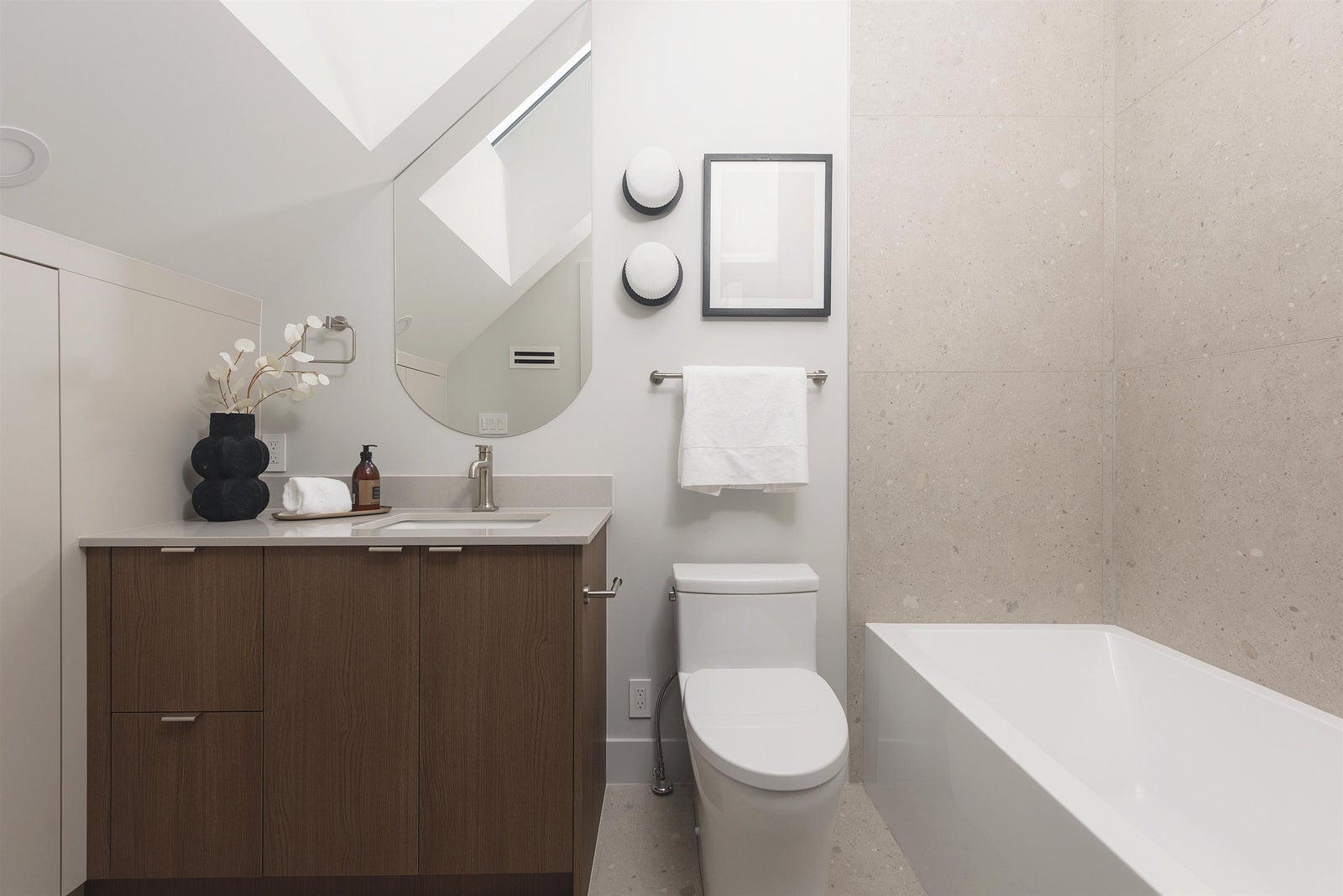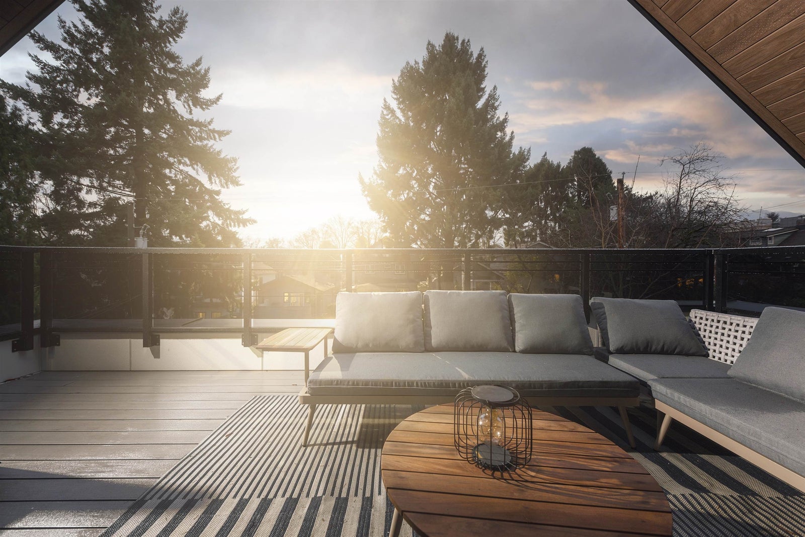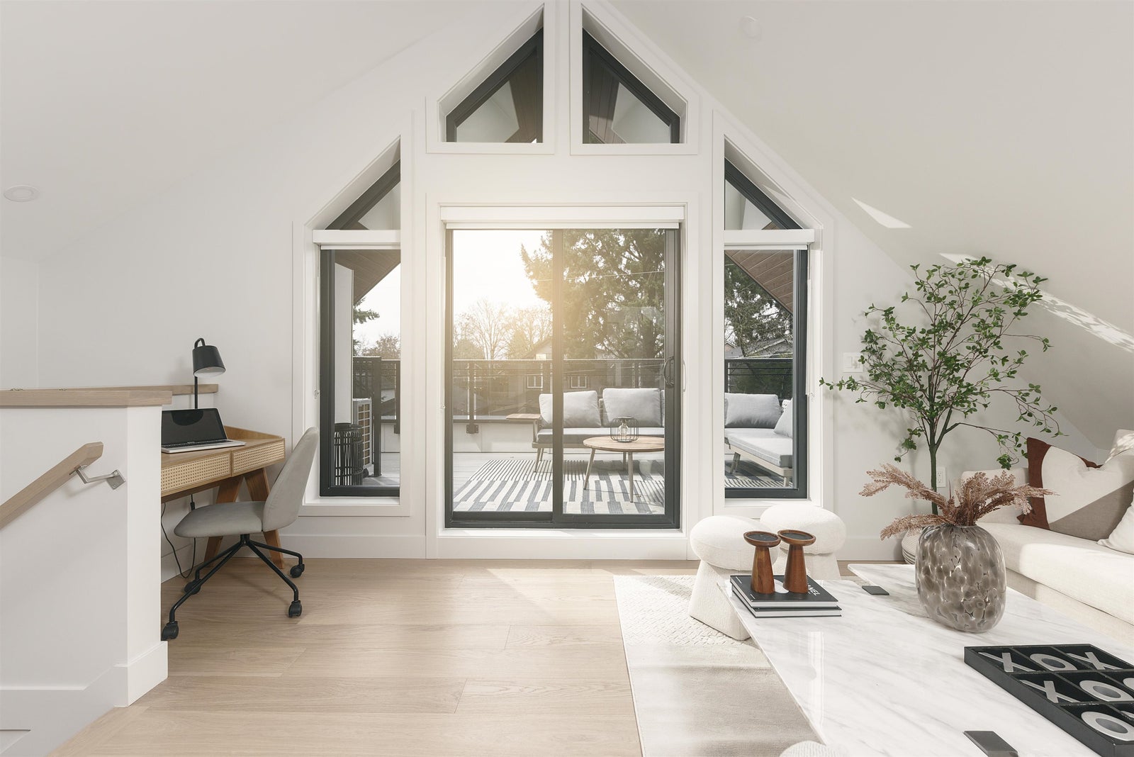 Proudly built by Medallion Homes and designed by VictorEric- Georgie Award Winning, this north-facing back-unit Kitsilano duplex offers coastal luxury steps from Kits Beach, parks, cafés, and top Westside schools. With 3 bedrooms and 3.5 baths, the home blends smart design with premium finishes. The gourmet kitchen features Miele and Fulgor Milano appliances, custom cabinetry, and a layout ideal for daily living and entertaining. Enjoy seamless indoor-outdoor flow with multiple patios, including a private all-season patio with built-in BBQ, heaters. The top-floor bedroom provides a tranquil retreat with its own deck and spa-style ensuite. Full crawlspace storage and a detached garage with epoxy flooring add convenience to this exceptional residence.